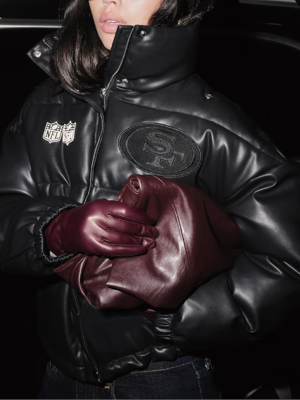 San Francisco 49ers Off Season Black Faux Leather Puffer Jacket